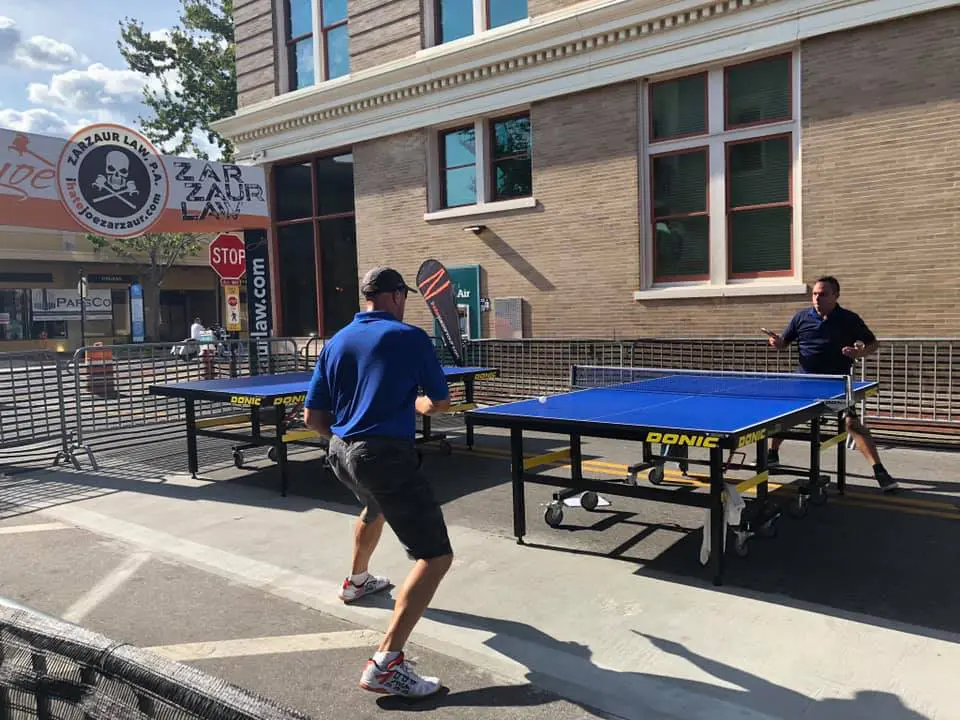 Businesses, organizations, and groups are encouraged to create teams of four, bring their tent, coolers, and signs and battle for bragging rights, and be the tops in team table tennis. New this year will be a “Best Downtown Bar/Brewery Team.”